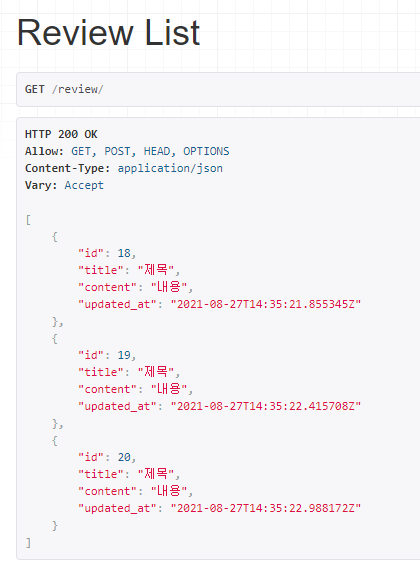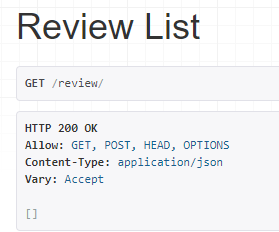 localhost:8000/review/로 이동해서 데이터가 잘 담아졌는지 확인해보자!!