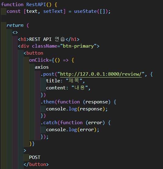 - 컴포넌트에서 쓰일 useState와 axios를 불러와준다!